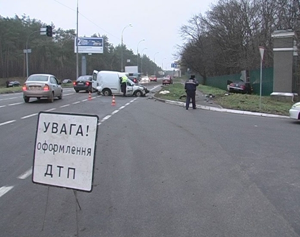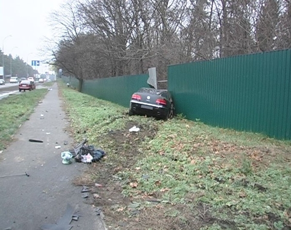 По предварительным данным, водитель последнего почему-то не обратил внимание на красный свет светофора и на большой скорости продолжил путь в сторону Киева. Черная машина задела белую иномарку. От удара «Фольксваген» отбросило в забор. В ДТП пострадал пассажир этого автомобля. Его немедленно госпитализировали.