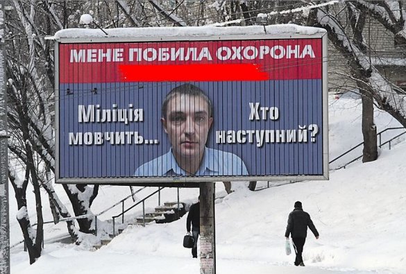 На днях, оскорбленный и избитый работниками охранной службы одного из супермаркетов киевлянин, заказал билборд с надписью »Меня избили охранники супермаркета <имя>. Милиция молчит. Кто следующий?».