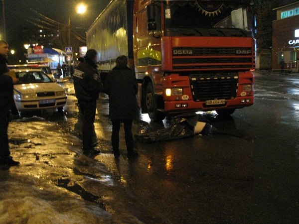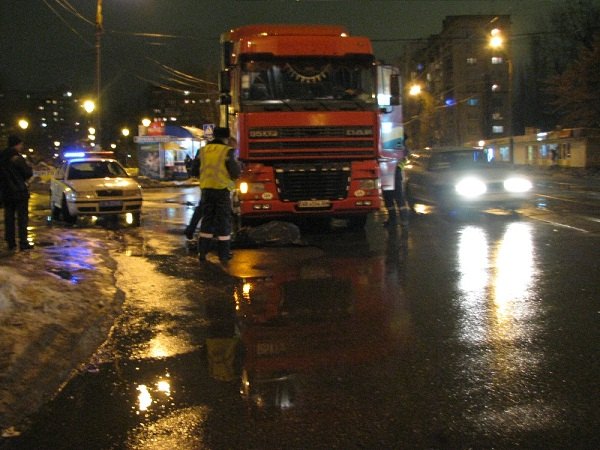 В пятницу, 4 января, в Киеве на перекрестке улиц Алма-Атинской и Гродненской грузовой автомобиль DAF с полуприцепом сбил насмерть мужчину, переходившего проезжую часть по пешеходному переходу.