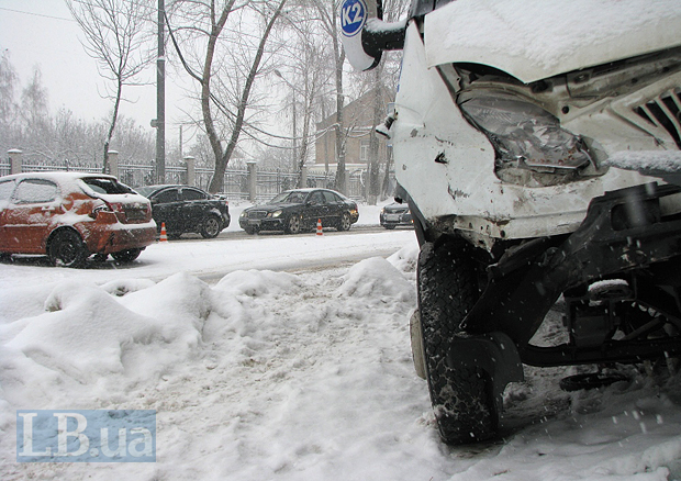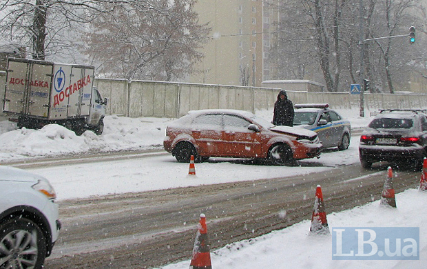 На выходных в Киеве на улице Трутенка столкнулись ГАЗель и легковой автомобиль Chevrolet. Об этом сообщает корреспондент LB.ua с места событий.