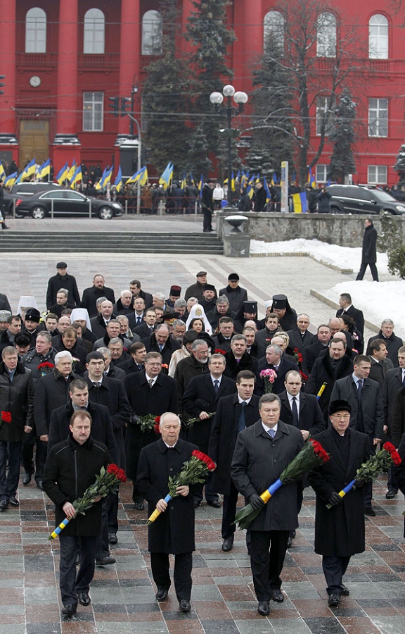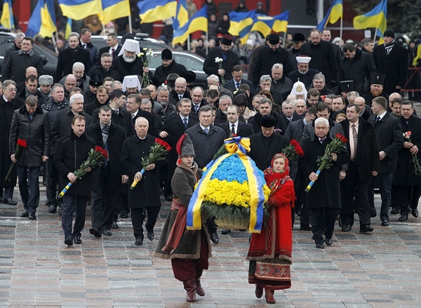 В День Соборности и Свободы Украины Президент Украины Виктор Янукович возложил цветы к памятникам Тарасу Шевченко и Михаилу Грушевскому. В церемонии также приняли участие Председатель Верховной Рады Владимир Рыбак, Премьер-министр Украины Николай Азаров, председатель Киевской городской государственной администрации Александр Попов, заместитель Киевского городского головы - секретарь Киевсовета Галина Герега, чиновники, представители духовенства и общественности.