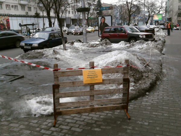 На одной из центральных улиц Киева появилось объявление, предупреждающее владельцев машин о возможном причинении повреждений их авто и об отсутствии ответственности со стороны коммунальных служб, сообщают Комментарии.