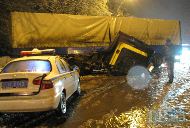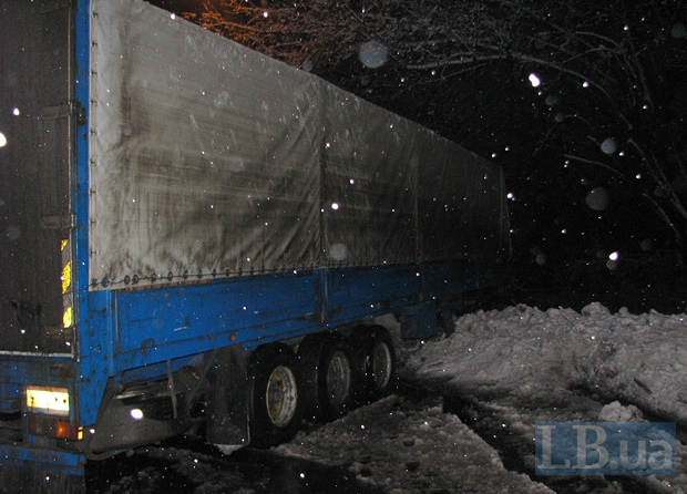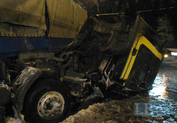 В Киеве на Брест-Литовском шоссе в результате ДТП у грузовика с полуприцепом оторвало водительскую кабину. Об этом сообщается с места событий.