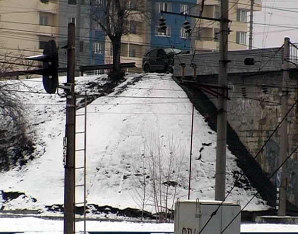 Иномарка остановилась практически в нескольких десятках сантиметров от крутого склона к железнодорожным путям. Именно в этом месте вырвано несколько метров металлического отбойника, поэтому «КИА» мог очень просто свалиться в пропасть.
