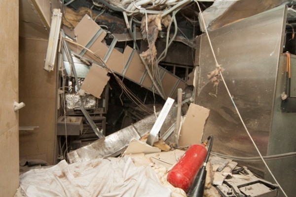 В результате взрыва, повреждено около 130 кв. м перекрытия между подвальным помещением и первым этажом, одна плита перекрытия уничтожена, частично повреждены несколько ненесущих перегородок в подвале.