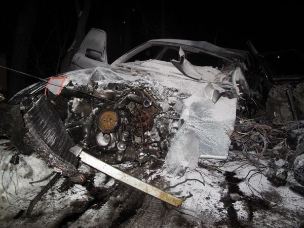 От контакта с деревом машина улетела вперед еще на полтора десятка метров, после чего остановилась и из моторного отсека пошел дым.