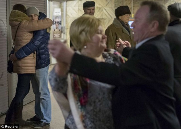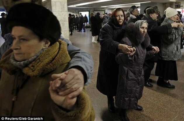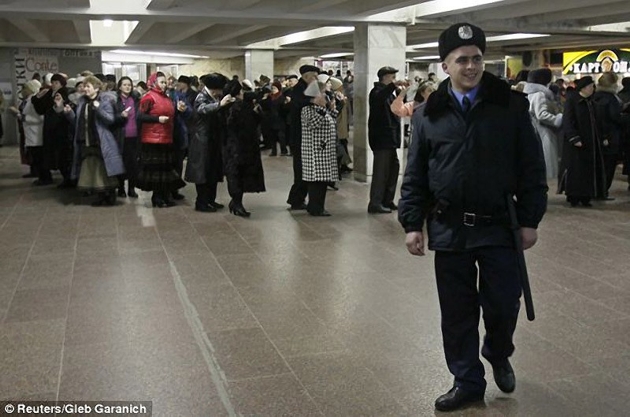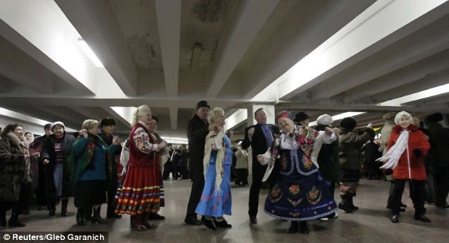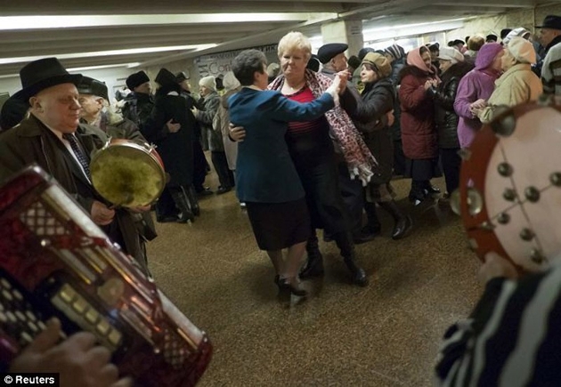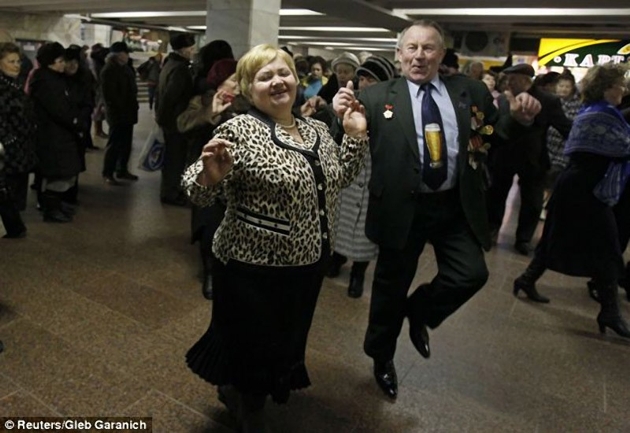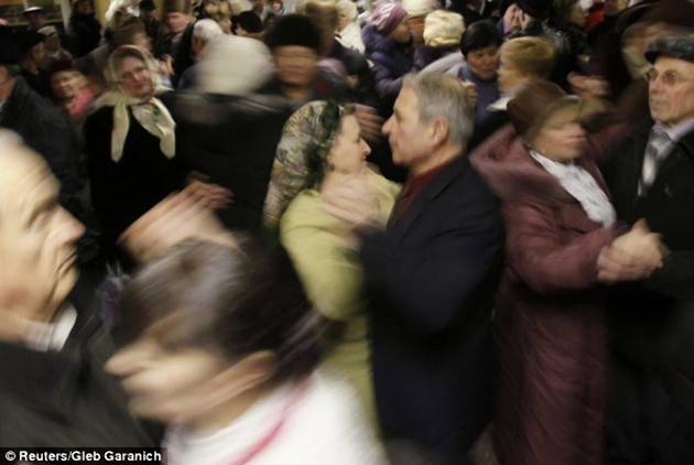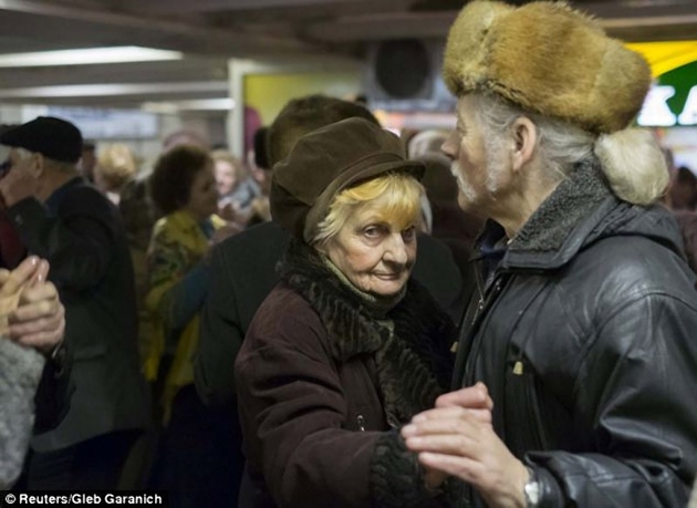 Глядя на эти фотографии, с первого взгляда можно подумать, что это обычный танцевальный зал. А затем вы замечаете, что многие танцоры очень тепло одеты. В Киеве пенсионеры встречаются на станции метро Театральная каждое воскресенье, чтобы повидаться с друзьями и потанцевать. А некоторые на закате жизни находят здесь настоящую любовь.