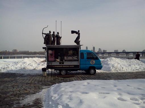 Фотографию выложила на своей страничке в Facebook пользователь Анна Лаврус со словами «можно, конечно, пошутить, что основатели Киева решили сменить транспорт, приспосабливаясь к современности. Но, если честно, ЭТО можно назвать только одним словом - ЖЛОБСТВО. Увы...»