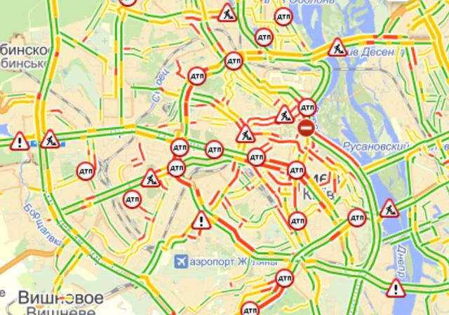Согласно данным «Яндекс. Пробки» по состоянию на 14:28 в Киеве уже были зафиксированы пробки в 7 баллов (серьезные пробки). Есть все основания предполагать, что ближе к вечеру движение в Киеве может быть парализовано.