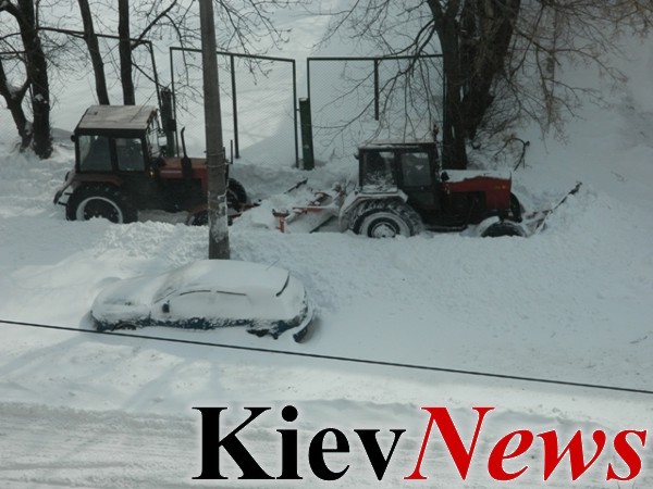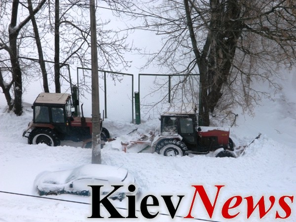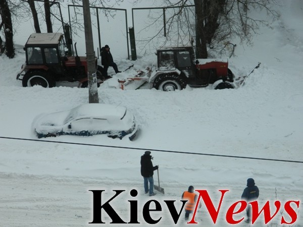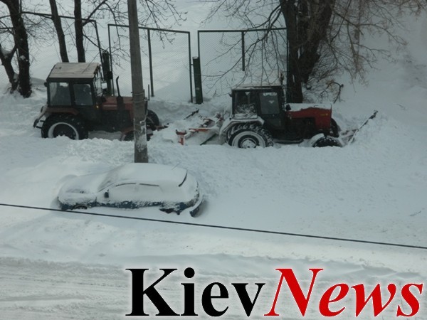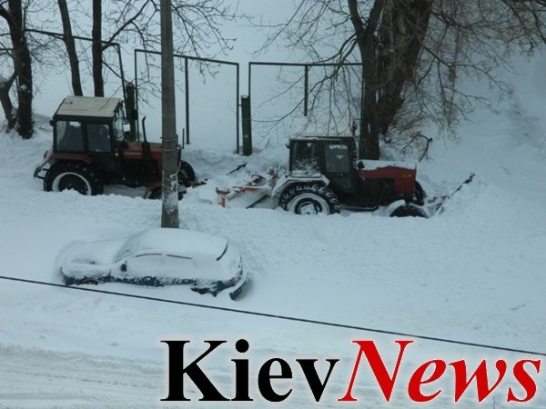 Сегодня, 24 марта, в Печерском районе столицы три трактора вытягивали друг друга из сугроба, в то время, когда в них нуждается город. Об этом сообщает корреспондент «Kievnews».