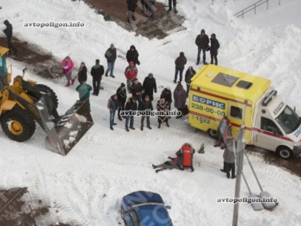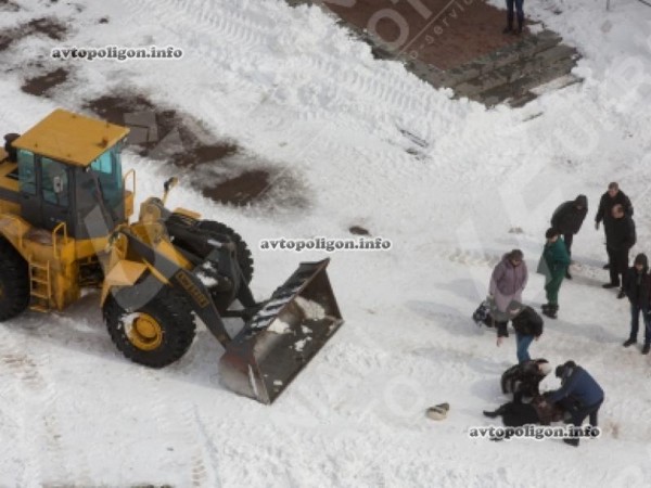 По словам очевидцев ДТП, во время того как трактор убирал снег возле Дворца спорта, женщина попыталась перебежать ему дорогу и поскользнулась.
