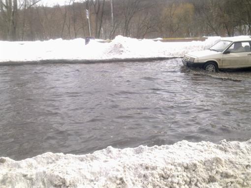Снежные сугробы уже начинают таять. Буквально час назад огромная лужа образовалась на 40-летия Октября в районе универмага.