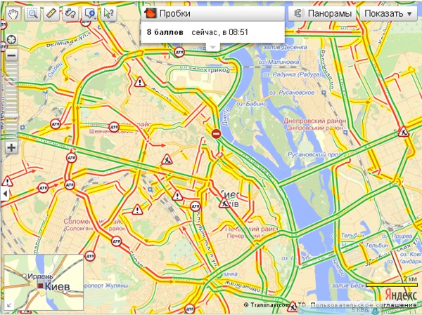 Заблокированы отдельные участки Кольцевой дороги, а также улицы Елены Телиги в сторону Шулявки. Не проехать по ул. Вадима Гетьмана. Частично заблокирован Чоколовский бульвар. Транспортный «коллапс» охватил центр и Подол. Заторы образовались на Оболонском проспекте и Троещине. Общий уровень заторов на данный момент – 8 баллов.