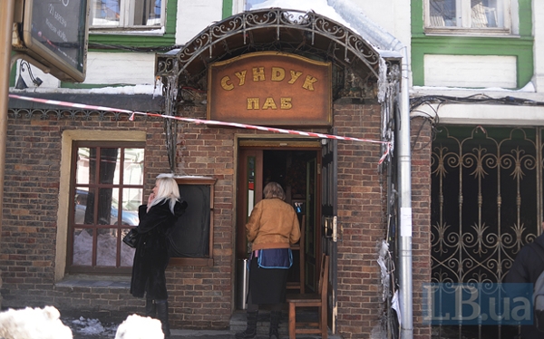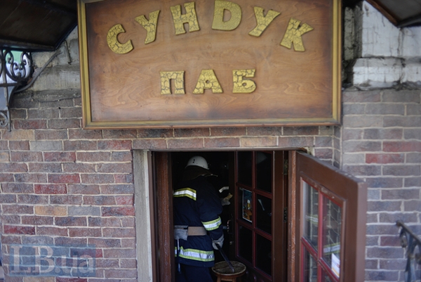 В центре Киева, на улице Михайловской близ площади Независимости, горел паб «Сундук». Из полуподвального помещения, где расположена пивная, несется запах гари. У здания стоят три пожарные машины, несколько карет скорой помощи и милицейские автомобили. Пожарные заливают «Сундук» водой.