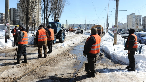 В Киеве трамвайные пути очищают от снега лишь спустя неделю после стихии (ФОТО)