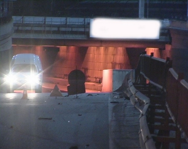 На выезде из тоннеля под Севастопольской площадью престижную иномарку сначала резко повело вправо. Легковушка задел металлический отбойник, а затем отскочил на другую сторону трассы и уже там окончательно уперся в металлическое ограждение.