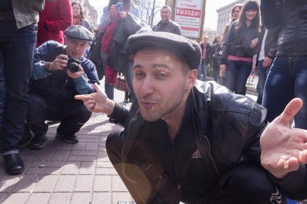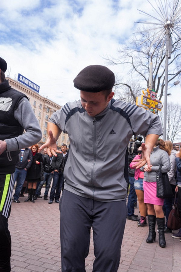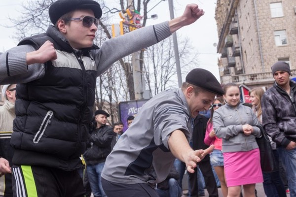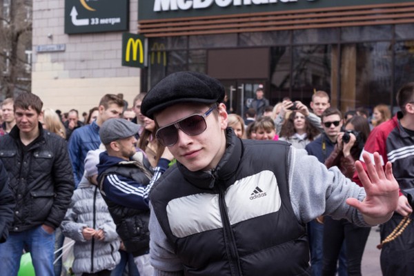 Молодые люди в традиционных для гоп-движения спортивных костюмах танцевали, пели песни, ели семечки и просто радовались весеннему солнцу. Мероприятие участники организовали через соцсеть «Вконтакте». «Мы сегодня собрались для того, чтобы хорошо провести время, послушать ровную и четкую музыку», - так объяснил свое присутствие на флэшмобе один из его участников.