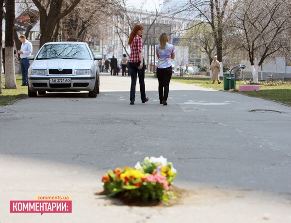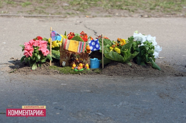 Ямы на дорогах Киева засадили цветами (ФОТО)