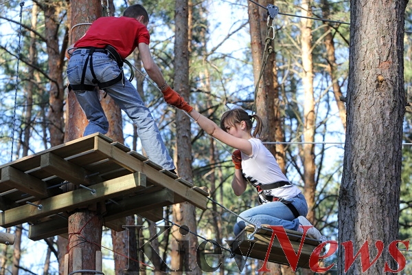 Для любителей полазить по вершинам в Святошинском районе столицы, в лесопарке «Совки» открылся спортивно-развлекательный парк «Маугли».Киевлянам и гостям столицы предоставляется возможность окунуться в мир джунглей.Фото: Станислав Груздев