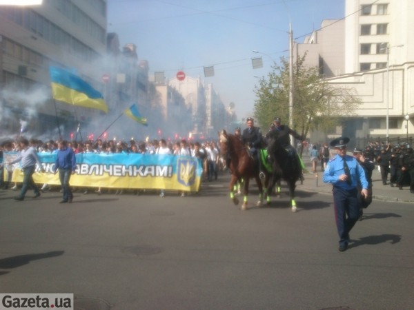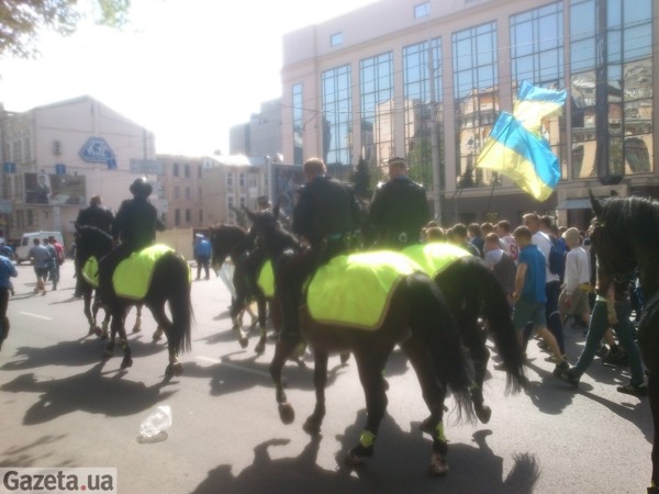 Все время колонну параллельно сопровождали бойцы спецподразделения «Беркут» и конные милиционеры. Во главе колонны ехали два милицейских автомобиля, которые расчищали дорогу. Чтобы контролировать акцию, милиционеры перекрыли улицы, а арки в домах контролировали милиционеры с собаками.