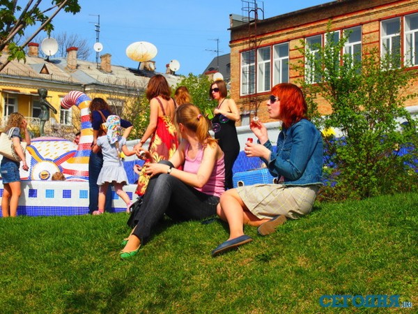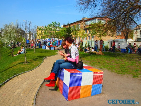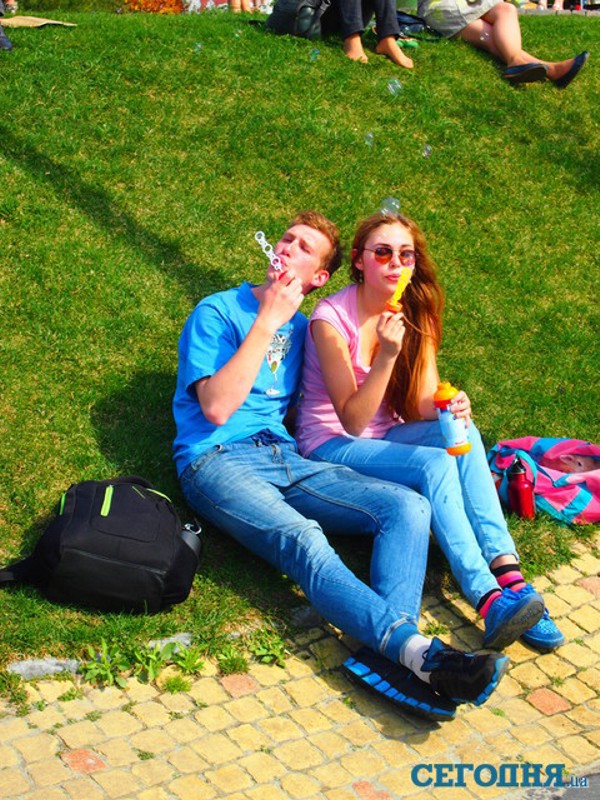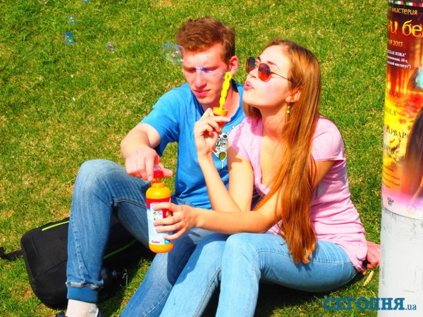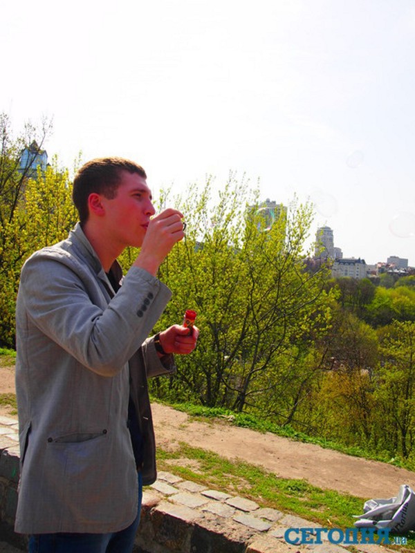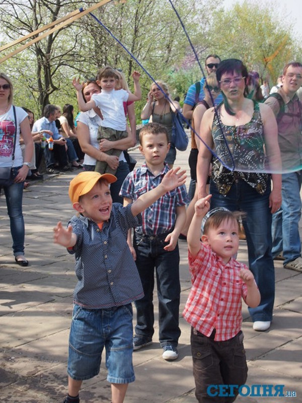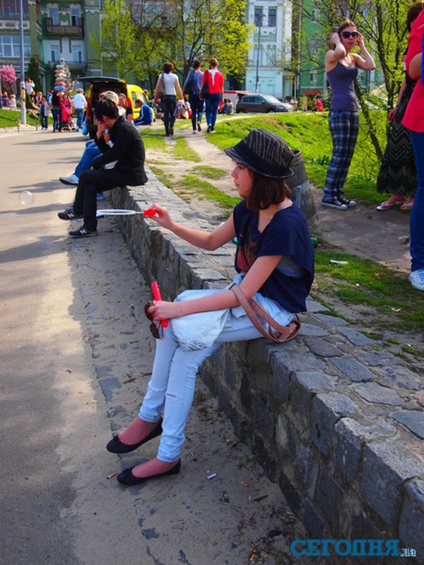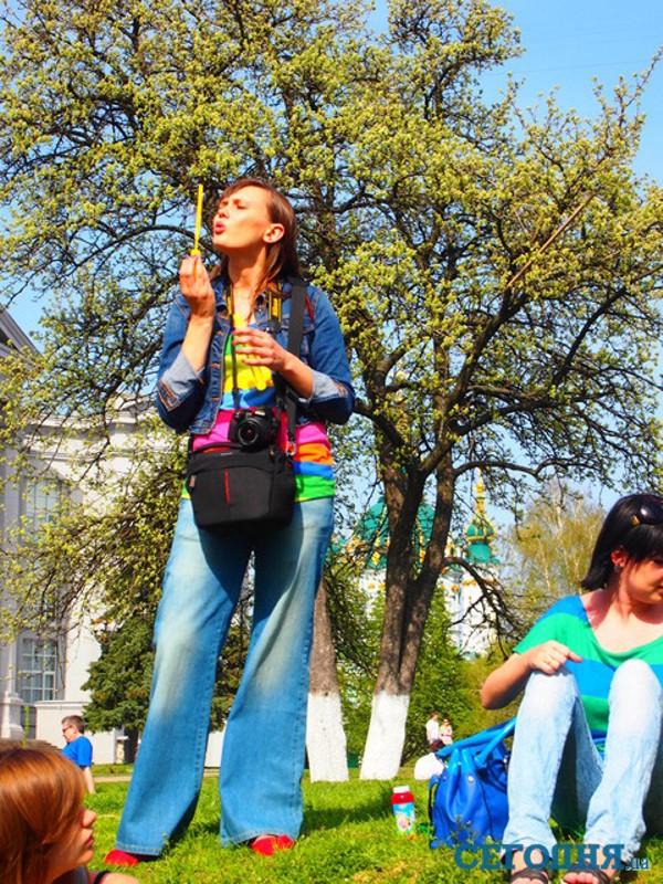 Сегодня на Пейзажной аллее в Киеве прошел Парад мыльных пузырей. Молодежь собралась, чтобы устроить массовое пускание пузырей, в том числе и гигантских.