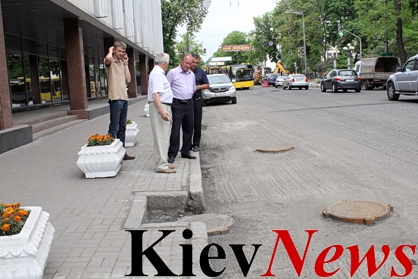 В центре Киева меняют дорожное покрытие на улицах, по которому высокопоставленные чиновники движутся на работу.
