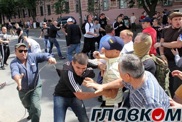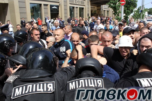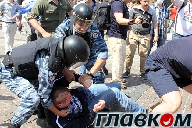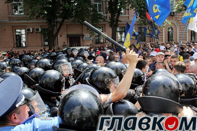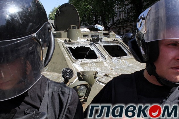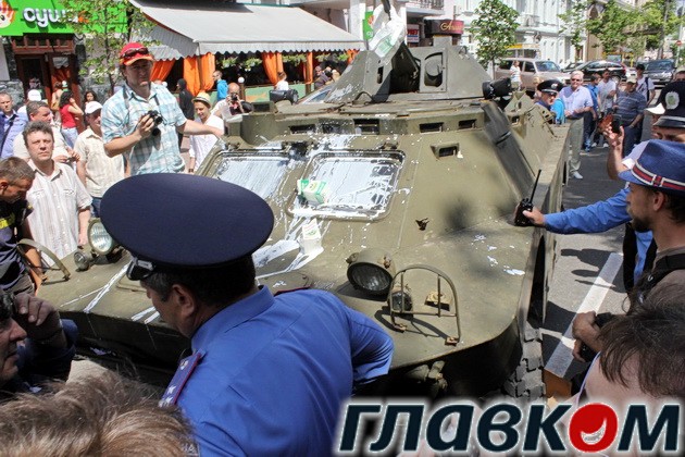 Сегодня возле Михайловской площади сторонники оппозиции окружили БТР. Они требовали, чтобы водитель машины предстал перед толпой. К месту события подтянулась группа лиц спортивного телосложения. Началась массовая драка, в которой участвовало около 100 человек. Милиция пыталась растянуть противоборствующие стороны, но ей это не удалось. В драке пострадали сами правоохранители.