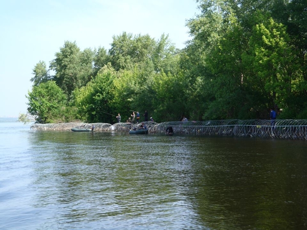 В Киеве продолжается беспредел. В районе первого шлюза осокорковской дамбы берег Днепра на протяжении полутора километров загражден противопехотными заграждениями.