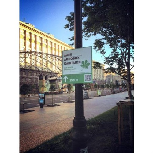 Самые интересные указатели находятся на Крещатике и возле метро «Лыбедская». Тот, что в центре города указывает на липовые каштаны, которые завезли в Украину из Италии. Табличка носит одноименное название. Второй рассказывает о непростой судьбе акулы, которая раньше жила в крупнейшем ТРЦ возле метро «Лыбедская». На указателе написано «Акулы, остерегайтесь людей».