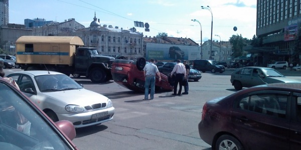 Volvo S60 задел в бок Ford Fiesta. По словам очевидца, кто-то из двоих решил проскочить, но черный седан ("Вольво") краем задел "Форд". Его развернуло и по инерции перекинуло на крышу, после чего он еще метров 5-7 проскользил в сторону бровки. Водитель особо не пострадал, был пристегнут, и ему сразу помогли вылезти. По предварительной информации, он порезал руку. Водитель долго ходил вокруг авто и собирал вещи, которые вылетели из салона. Сотрудники ГАИ приехали довольно оперативно, через 5 минут. Еще через 10 минут появились две скорые.