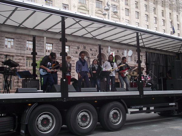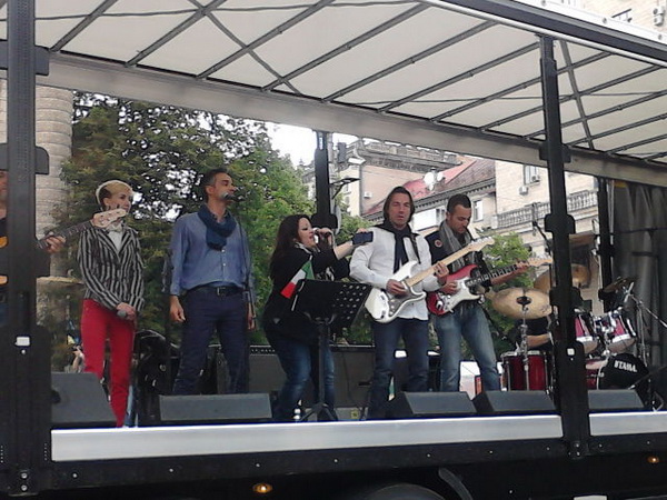 Остановку сделали напротив мэрии, дав возможность всем желающим рассмотреть машины и сфотографироваться в их салонах. Парад закрывал переоборудованный под сцену грузовик, на котором итальянская группа исполнила «Червону руту» на итальянском и украинском языках.