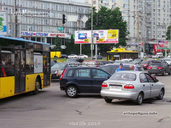 Днем 08.06.2013 на Голосеевской площади в Киеве выключили все светофорные объекты.