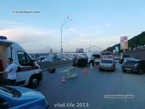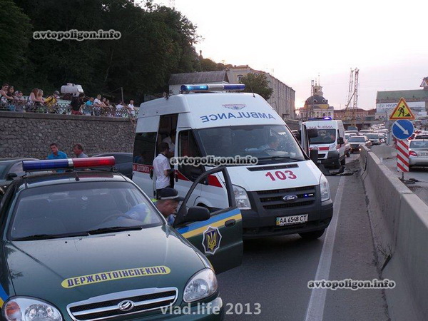 ДТП произошло 09.06.2013 в 20:20 в Киеве на Набережном шоссе 4, в 200 метрах от Почтовой площади.