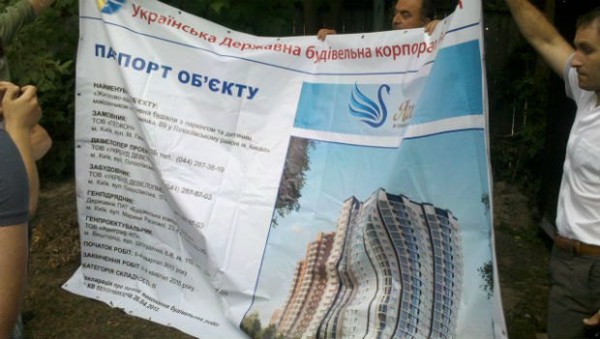 Застройщик - Украинская государственная строительная корпорация «Укрстрой», которая сейчас возводит несколько многоэтажек по Киеву, в том числе - так называмый парк-холл «Горький» неподалеку на Печерске.