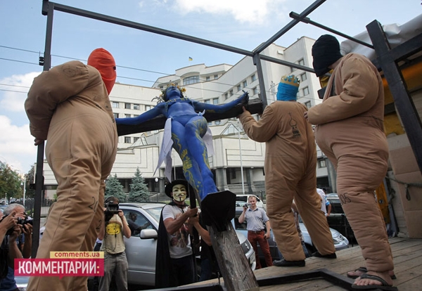 Возле Конституционного суда «распяли» Конституцию (ФОТО)