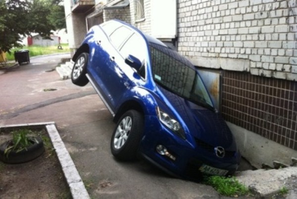 Оказывается, чтобы стать звездой не нужно побеждать в гонках, или быть настоящим профи в вождении. Достаточно лишь раз в жизни припарковаться. Зато как. Яркий пример показали в пятницу днем девушки на внедорожнике Мазда СХ7. Подкатив к дому подруги, барышня за рулем кроссовера так увлеченно болтала по мобильному телеффону, что не заметила впереди цокольный этаж.