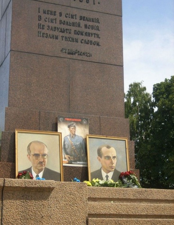 Под памятником Шевченко установили портрет Бандеры (ФОТО)