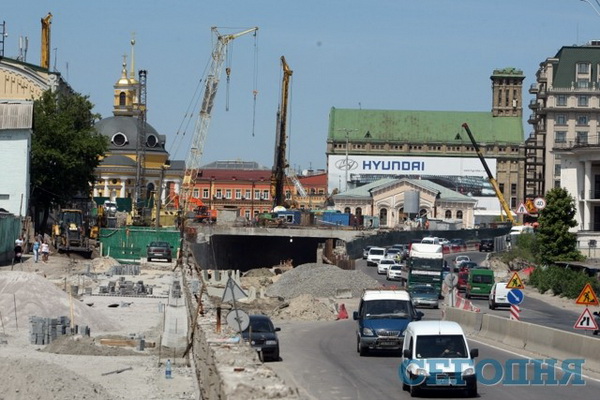 Киевляне ждали открытия автотоннеля на Почтовой площади ко Дню Конституции, однако сделать это не удалось.