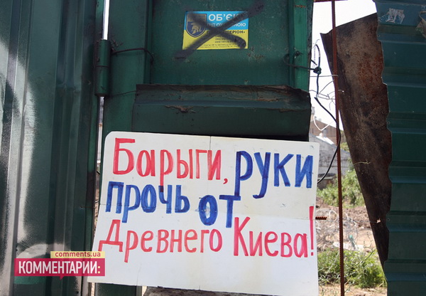 Как киевляне сломали забор и прорвались на стройку в Десятинном переулке (ФОТО)