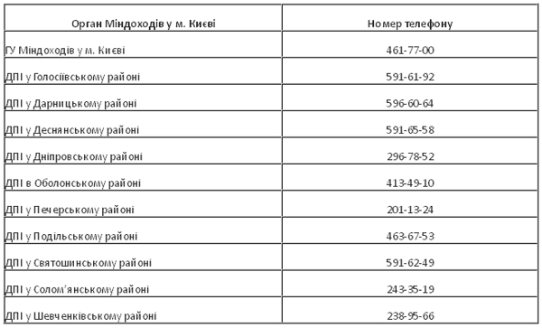 Получить консультацию по указанным вопросам граждане могут позвонив Консультационного центра ГУ Миндоходив в Киеве и ГНИ в районах ГУ Миндоходив в Киеве по следующим телефонам: