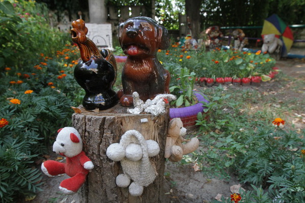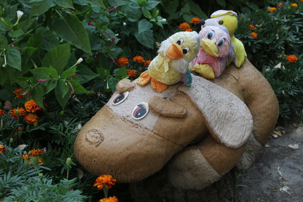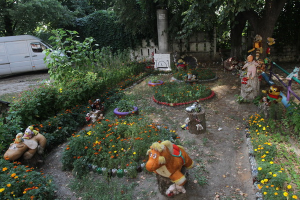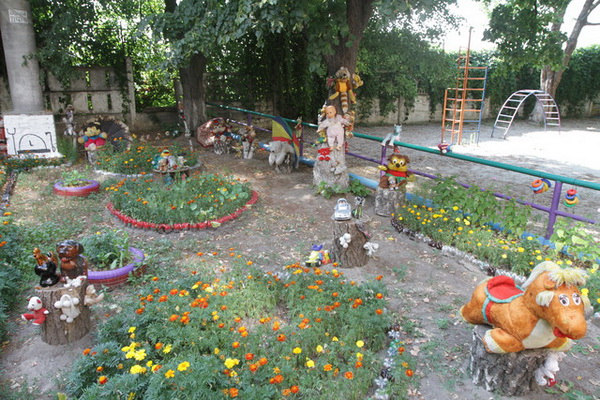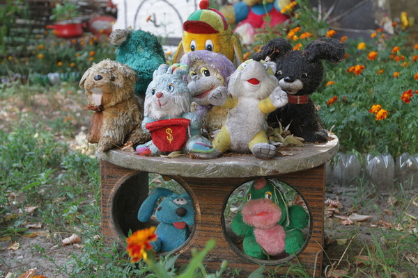 В Киеве на улице Щербакова, 33 жители обустроили очень оригинальную клумбу. Для оформления использовали старые детские игрушки.