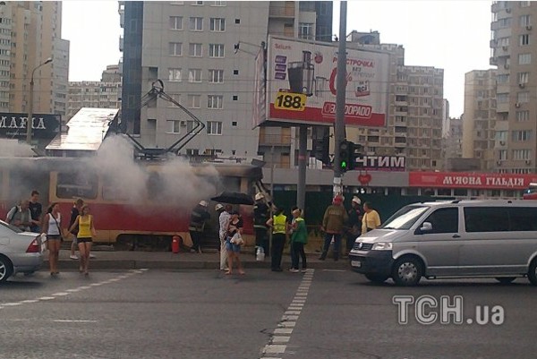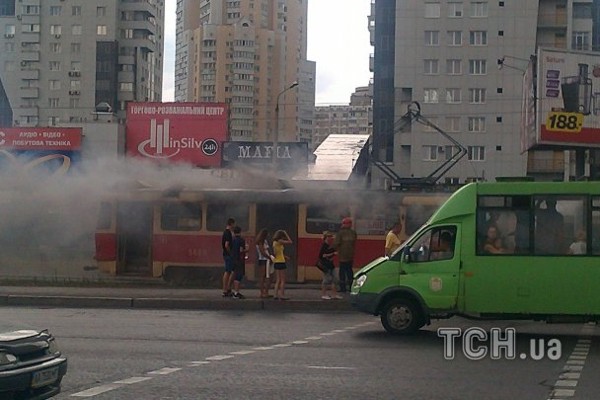 В Киеве возле станции метро Позняки загорелся трамвай.