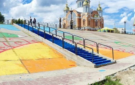 В субботу, 20 июля, киевские активисты раскрасили лестницу на Оболонской набережной по улице Героев Сталинграда, 20-А.