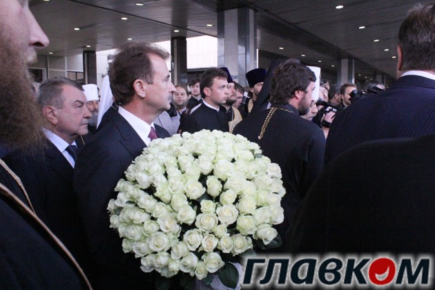 Как сообщает «Главком», на платформе с огромным букетом белых роз находился, в частности, глава КГГА Александр Попов, вице-премьер по гуманитарным вопросам Константин Грищенко и другие высокие должностные лица. Также в делегации встречающих много священнослужителей.