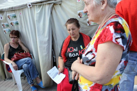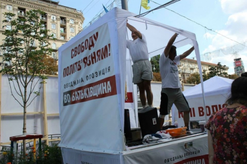 Жители палаточного городка, расположенного на Крещатике возле Печерского районного суда Киева, готовятся к митингу по случаю двухлетия пребывания экс-премьера Юлии Тимошенко в неволе. Митинг запланирован на 11:00 в понедельник, 5 августа.