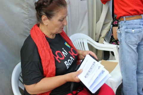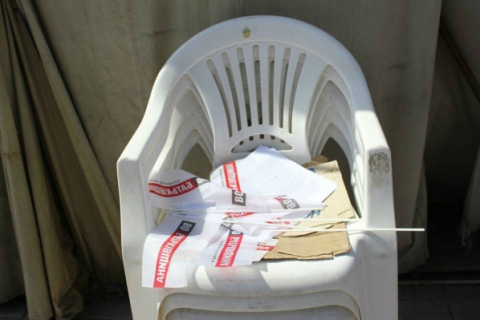 Со вчерашнего вечера в палаточном городке «Батькивщины» оживление. Активисты ведут работы по подготовке к предстоящему митингу: монтируют новый стенд вдоль дороги с баннерными зонами «Великобритания», «США», «Германия» и «Литва», готовят фотовыставку и убирают ветхие конструкции.