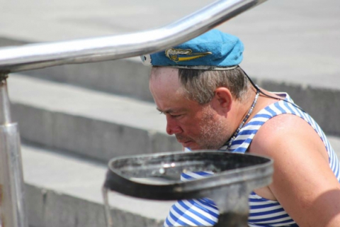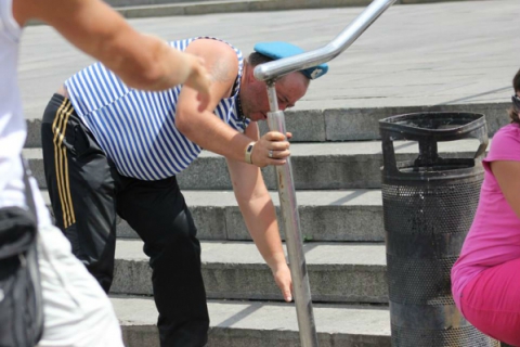 Впрочем, некоторые из десантников уже навеселе. Примечательно, что милиции не мешает ВДВшникам отмечать праздник.