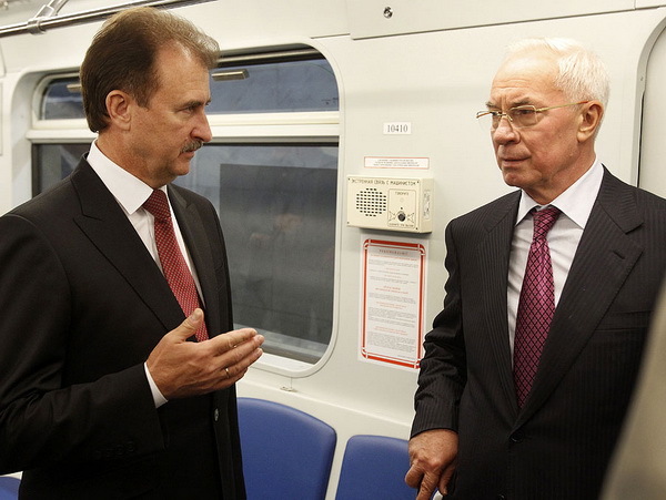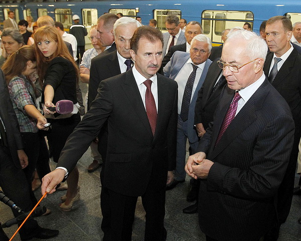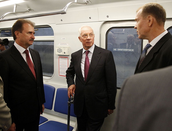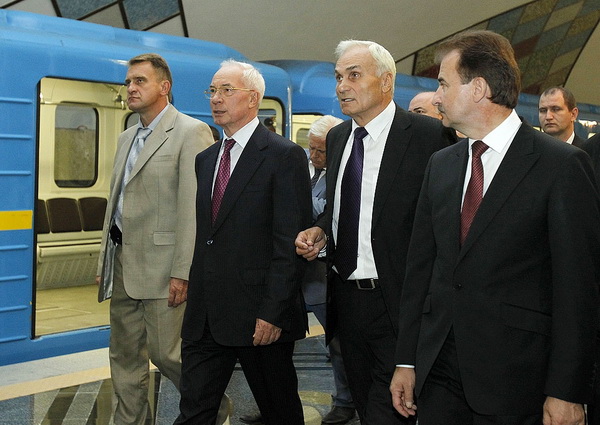 Премьер-министр Украины Николай Азаров ознакомился с ходом строительства участка Куреневско-Красноармейской линии Киевского метрополитена от станции «Ипподром» до станции «Теремки». Глава правительства осмотрел новый поезд, который начнет работать на новом участке линии метрополитена, и проехал на нем от станции «Ипподром» до станции «Теремки», строительство которой сейчас завершается. Николая Азарова сопровождали председатель Киевской городской государственной администрации Александр Попов, начальник КП «Киевский метрополитен» Владимир Федоренко, директор СП «Дирекция строительства метрополитена» Александр Охотников и генеральный директор ОАО «Киевметрострой» Владимир Петренко.