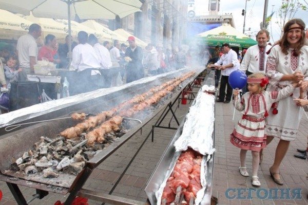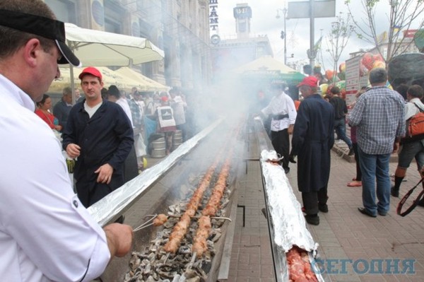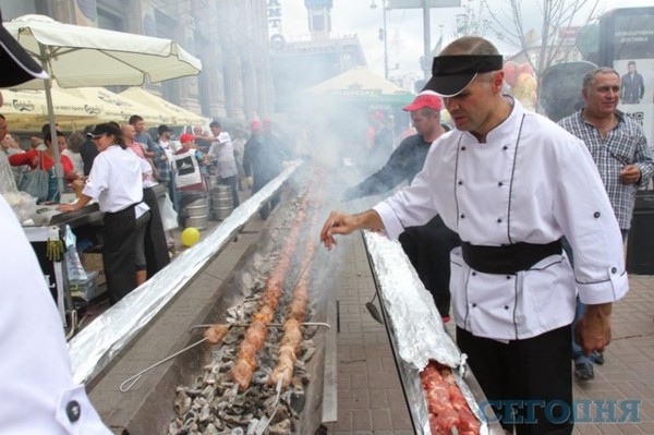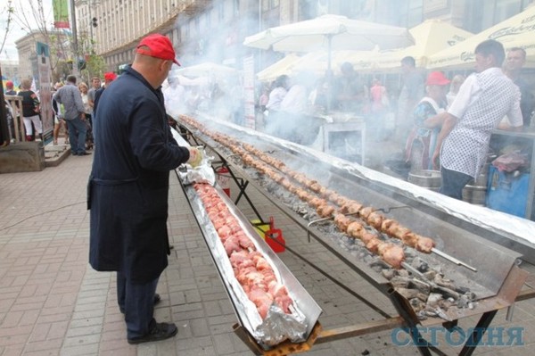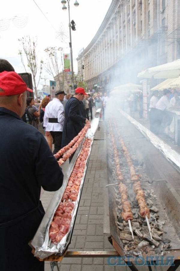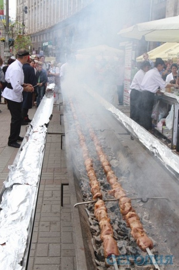 Мангальщики следили, чтобы блюдо получилось вкусным и не подгорело. А продегустировать мегашашлык смогли все желающие.