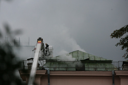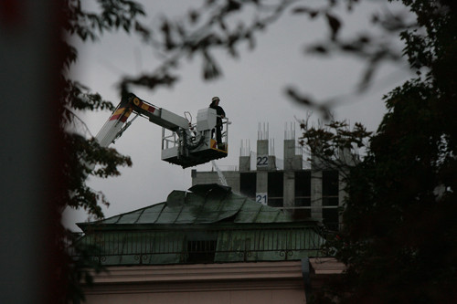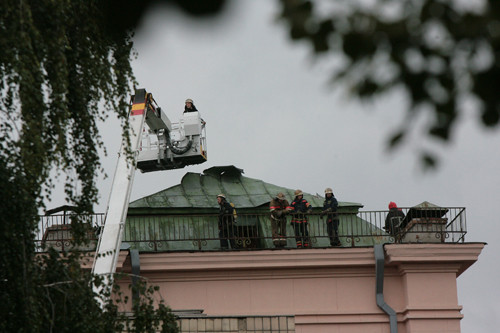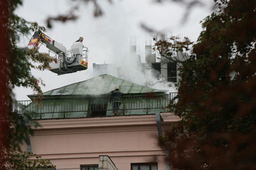 Спасатели ликвидировали возгорание крыши в здании университета Богомольца по адресу: проспект Победы, 34.